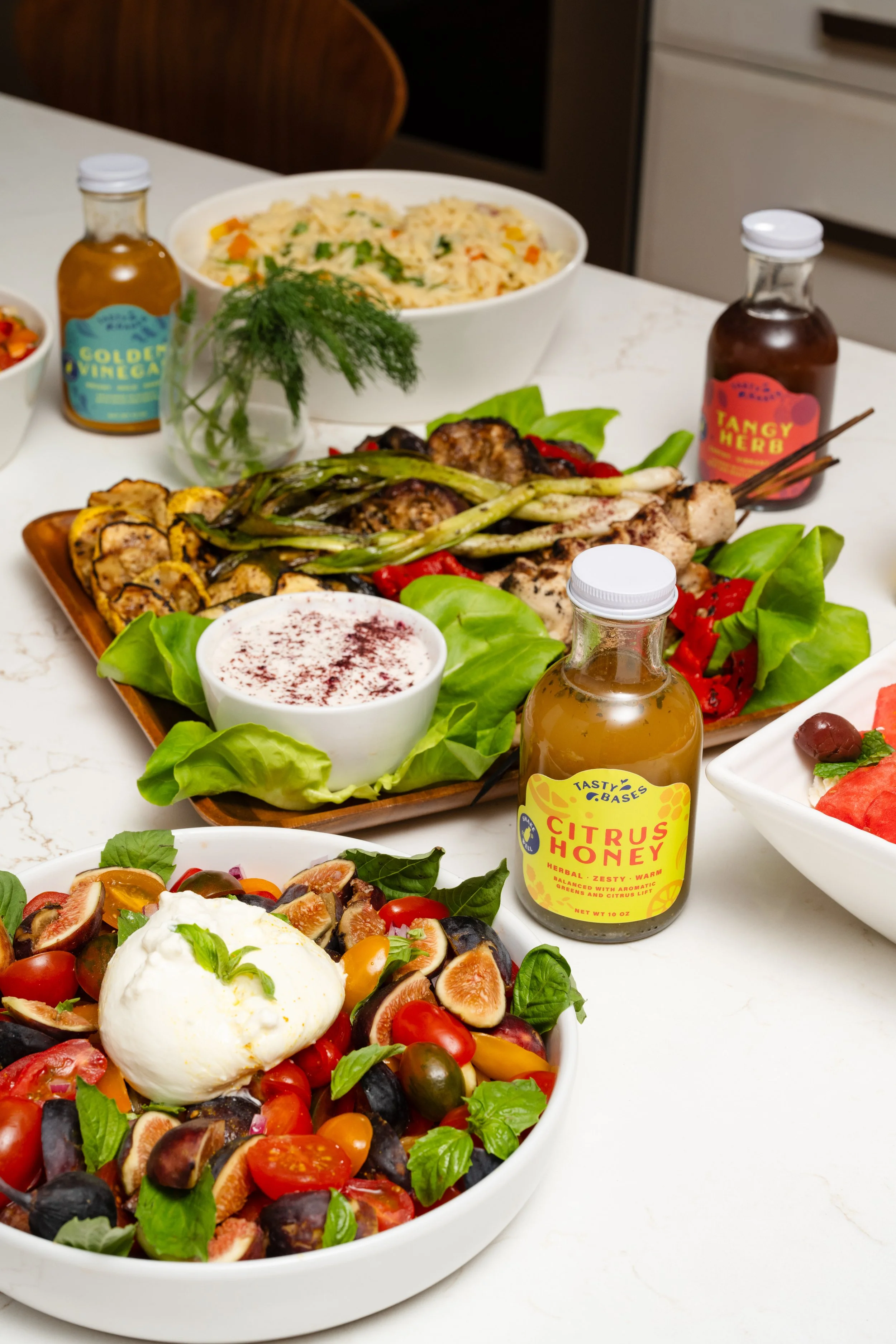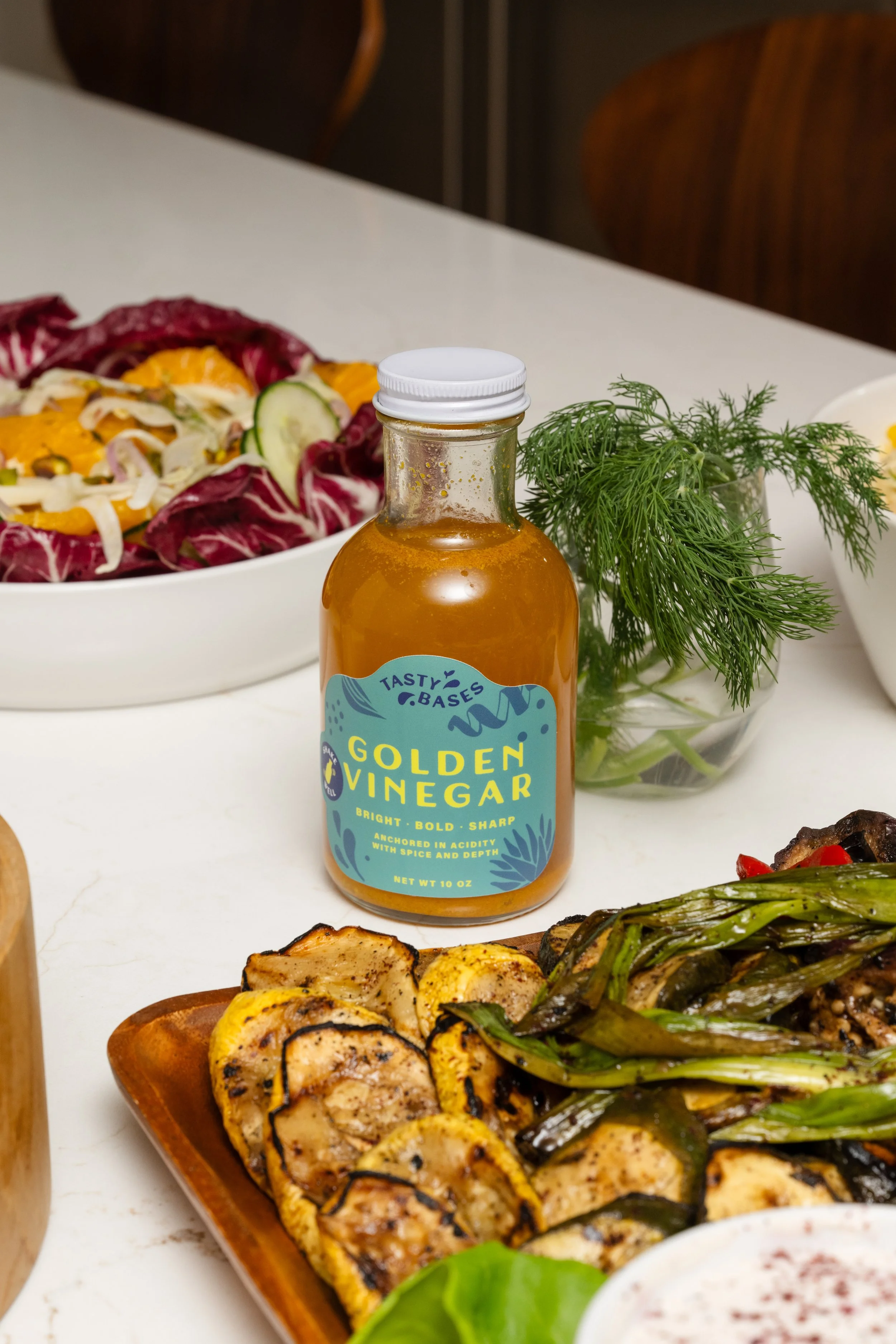 Shop Your Favorites Choose your flavor, grab a bottle and let the magic happen in your kitchen. Perfect for salads, marinades, veggie dips or any dish that needs a bright, fresh flavor boost. Three fresh flavors. Unlimited ways to use them. Golden Vinegar $12.00 Citrus Honey $12.00 Tangy Herb $12.00
